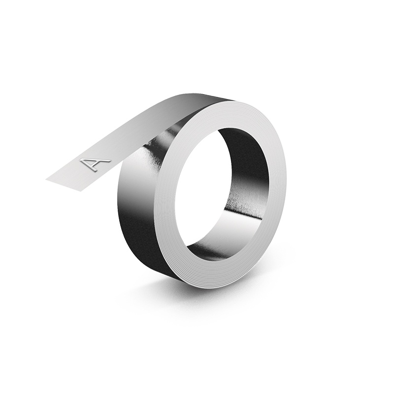 Cinta Rhino en aluminio con adhesivo de 12m.m x 3,7 mts para rotuladora manual Rhino, ideal para marcar tuberías, cables subterráneos, piezas de motores y materiales de construcción