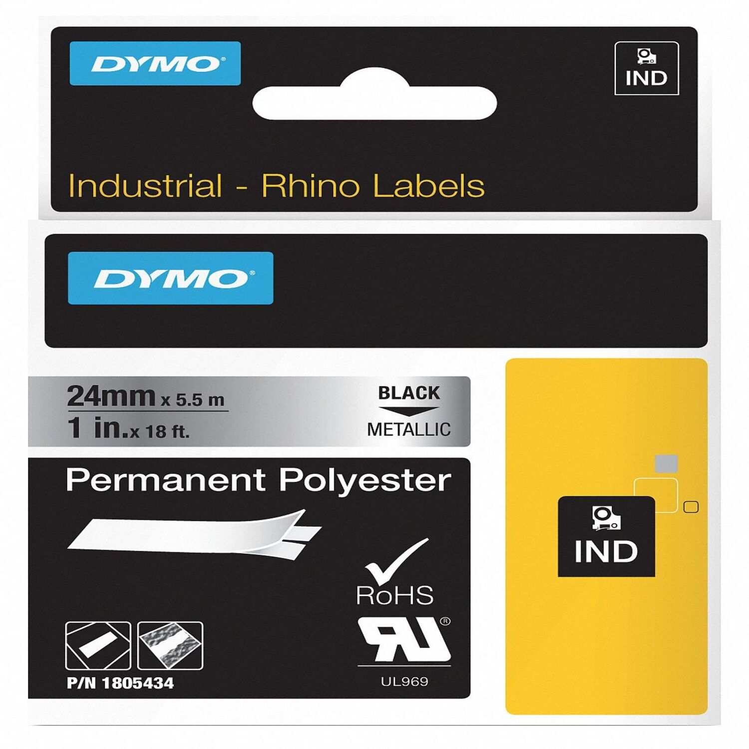 Cinta Dymo Rhino en poliéster para rotuladora Rhino 6000 PLUS, imprime en texto negro sobre fondo metálico de 12 mm de ancho x 3,5 mts de largo