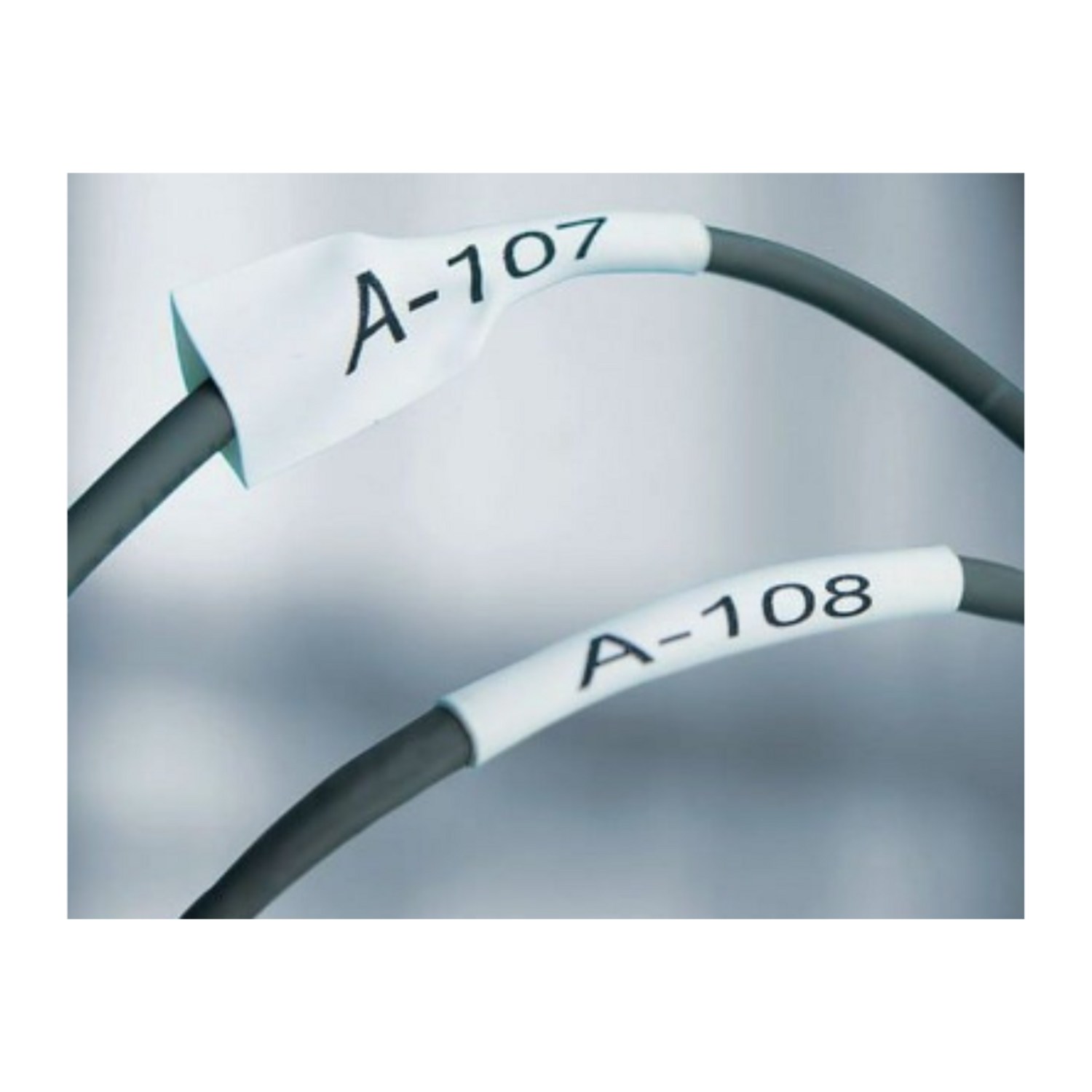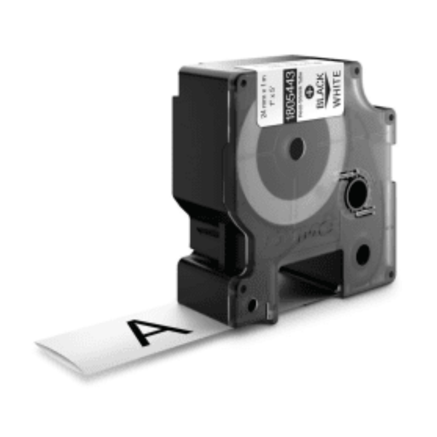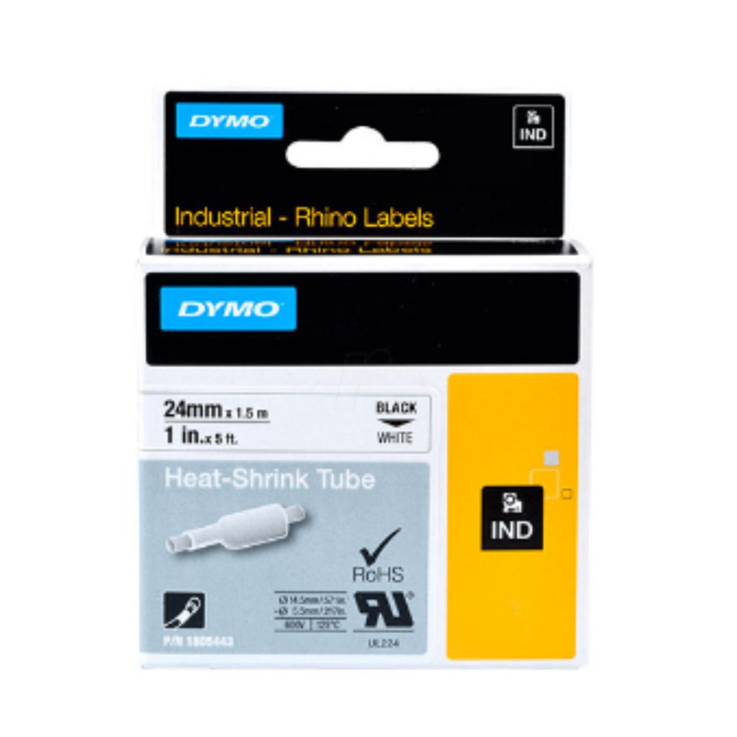 Cinta Dymo Rhino termoencogible para rotuladora Rhino 6000 PLUS. Imprime en color negro sobre blanco, 24 mm de ancho x 1,5 mts de largo