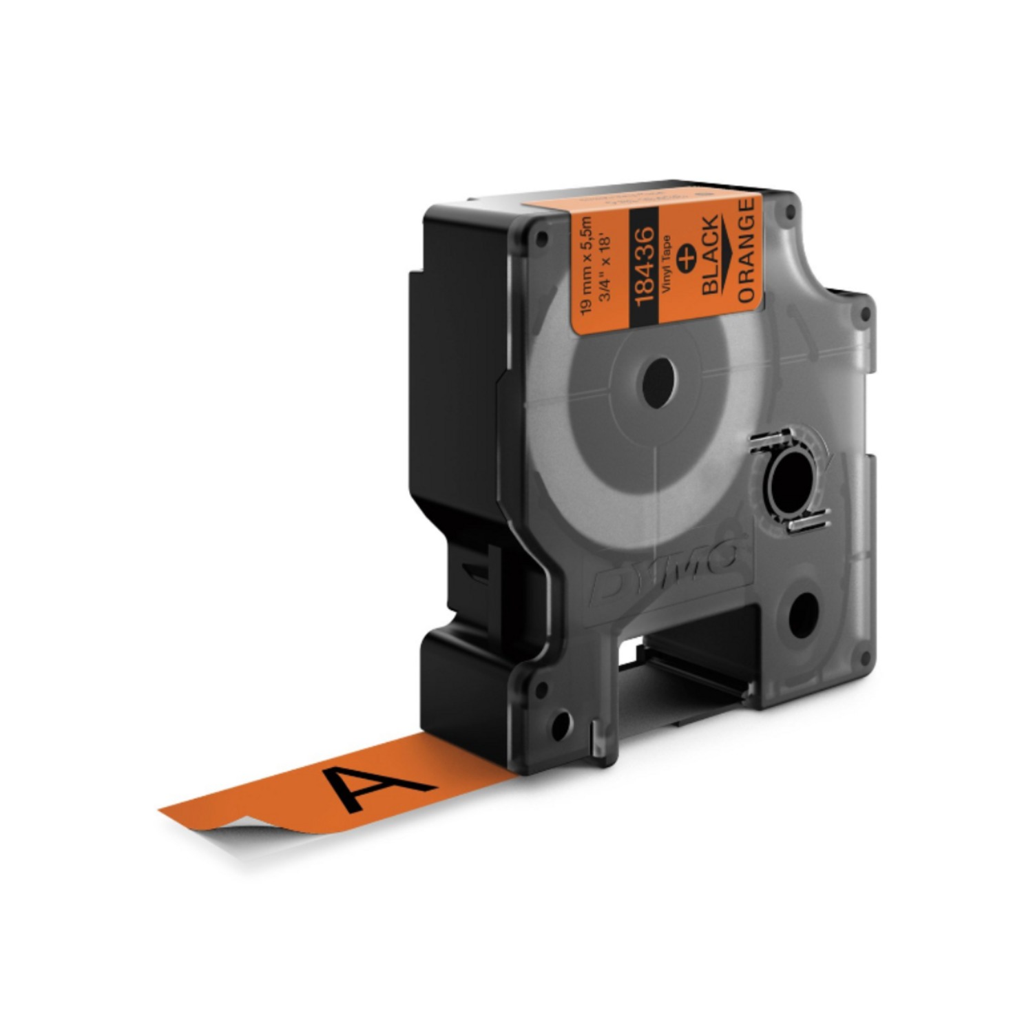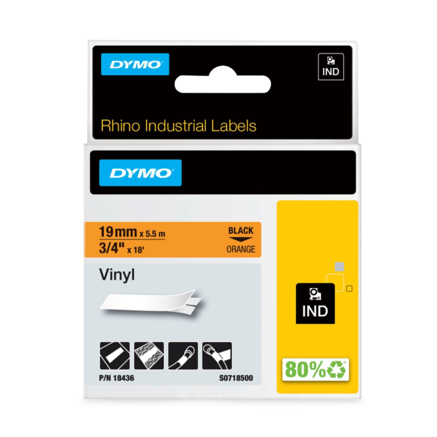 Cinta Rhino en vinilo para rotuladora Rhino 4200, 5200 y 6000 PLUS, imprime en color negro sobre fondo naranja de 19 mm de ancho x 5.55 mts de largo