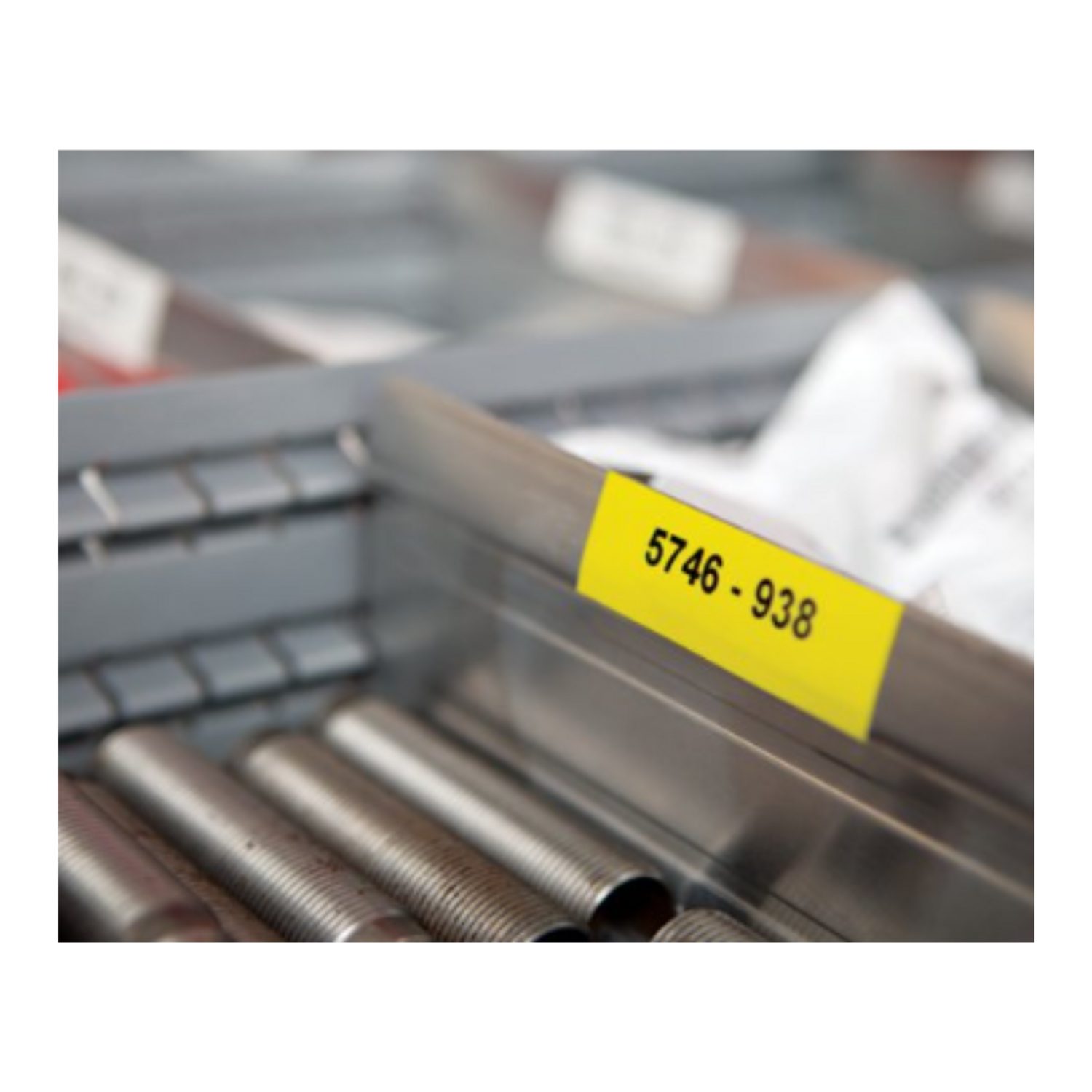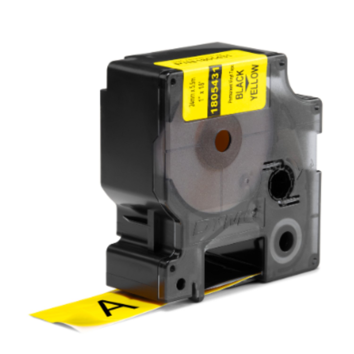 Cinta Dymo rhino en vinilo, para rotuladora Rhino 6000 y 6000 PLUS. Imprime en color negro sobre fondo amarillo de 24 mm de ancho x 5.55mts de largo