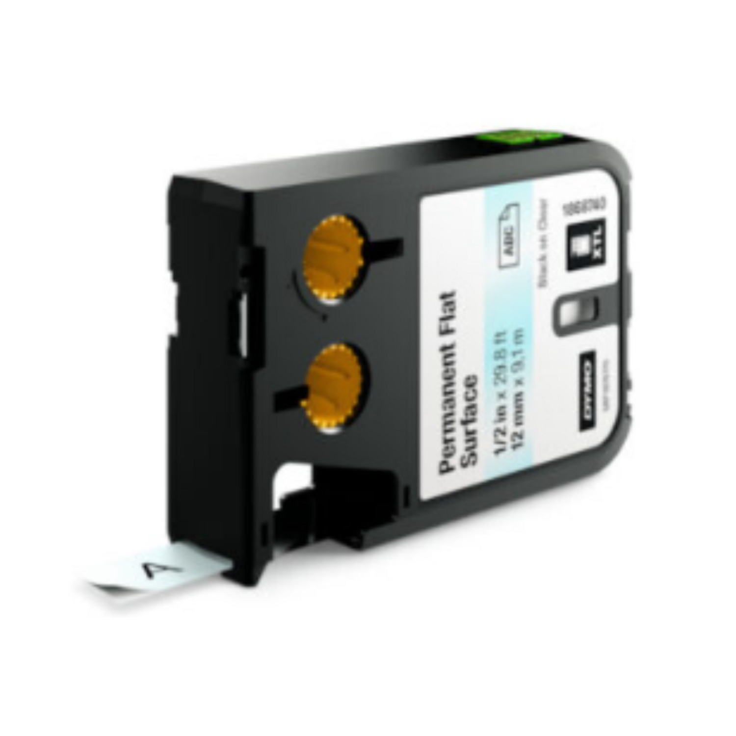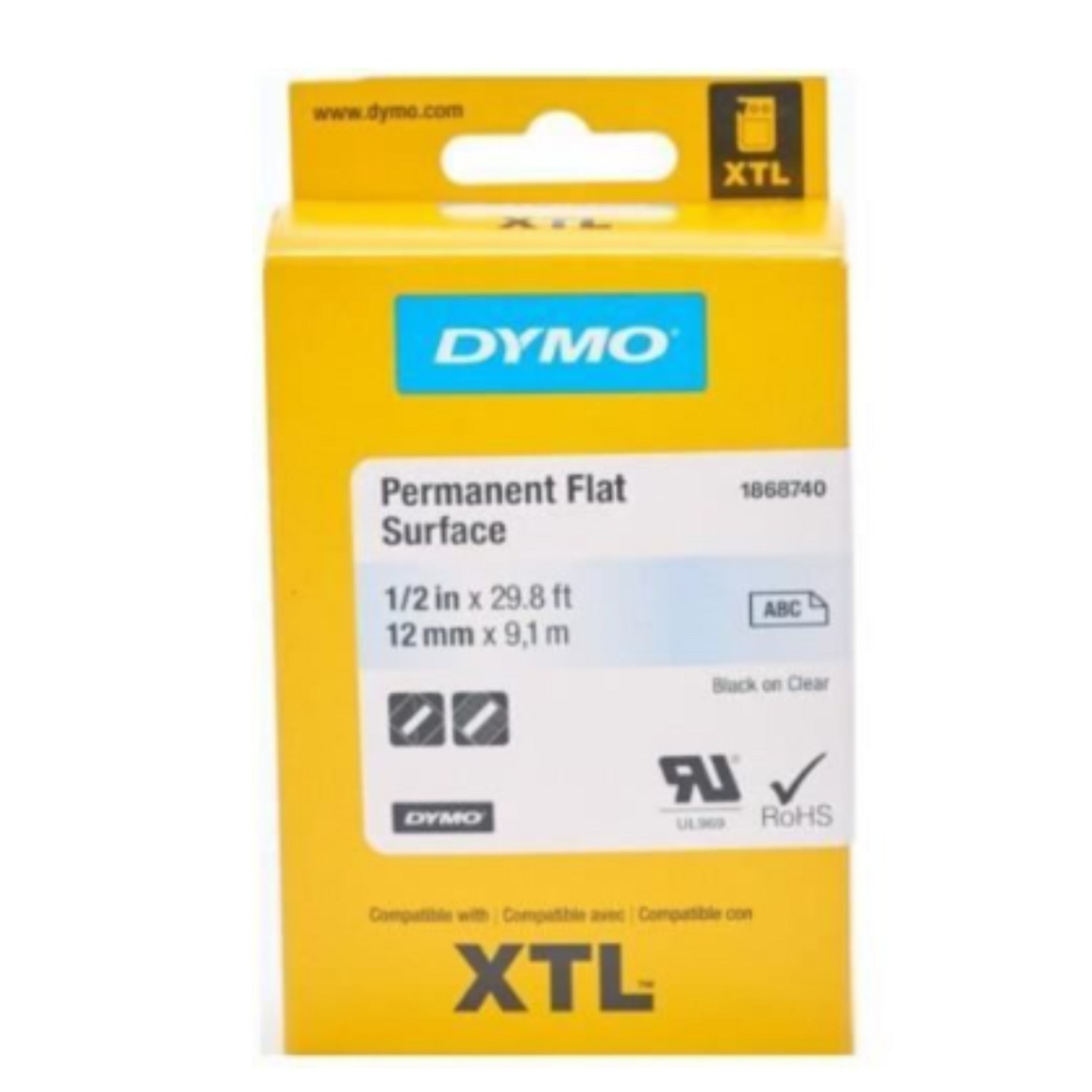 Cinta Dymo XTL en poliéster color negro sobre amarillo de 12mm de ancho x 7 mts de largo recubierta con adhesivo de grado industrial.