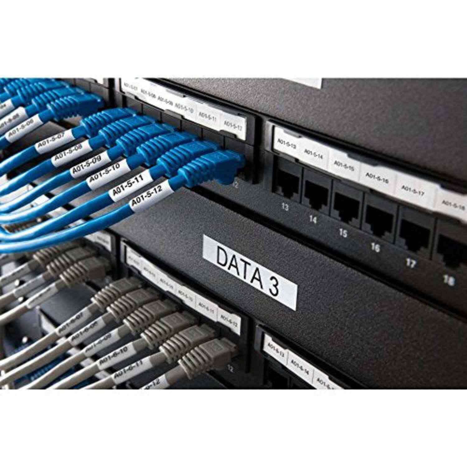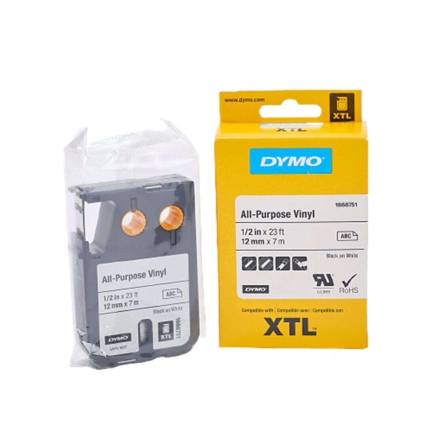 Cinta Dymo XTL en vinilo color negro sobre blanco de 12mm de ancho x 7 mts de largo recubierta con adhesivo de grado industrial.