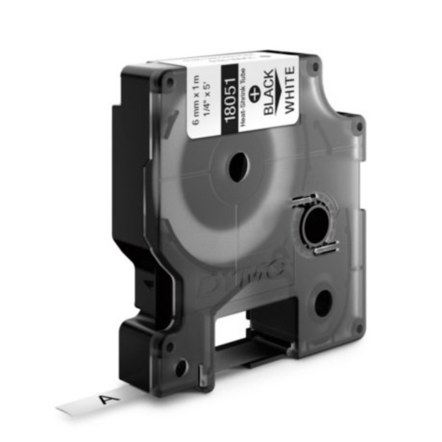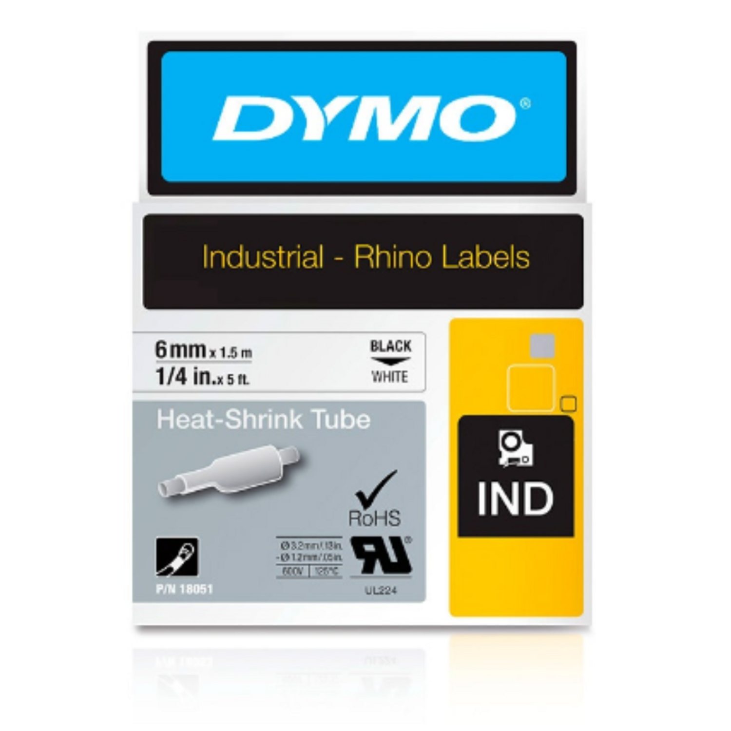 Cinta Rhino termoencogible para rotuladora Rhino 4200, 5200 y 6000 PLUS. Imprime en color negro sobre fondo blanco de 6 mm de ancho x 1.55 mts de largo