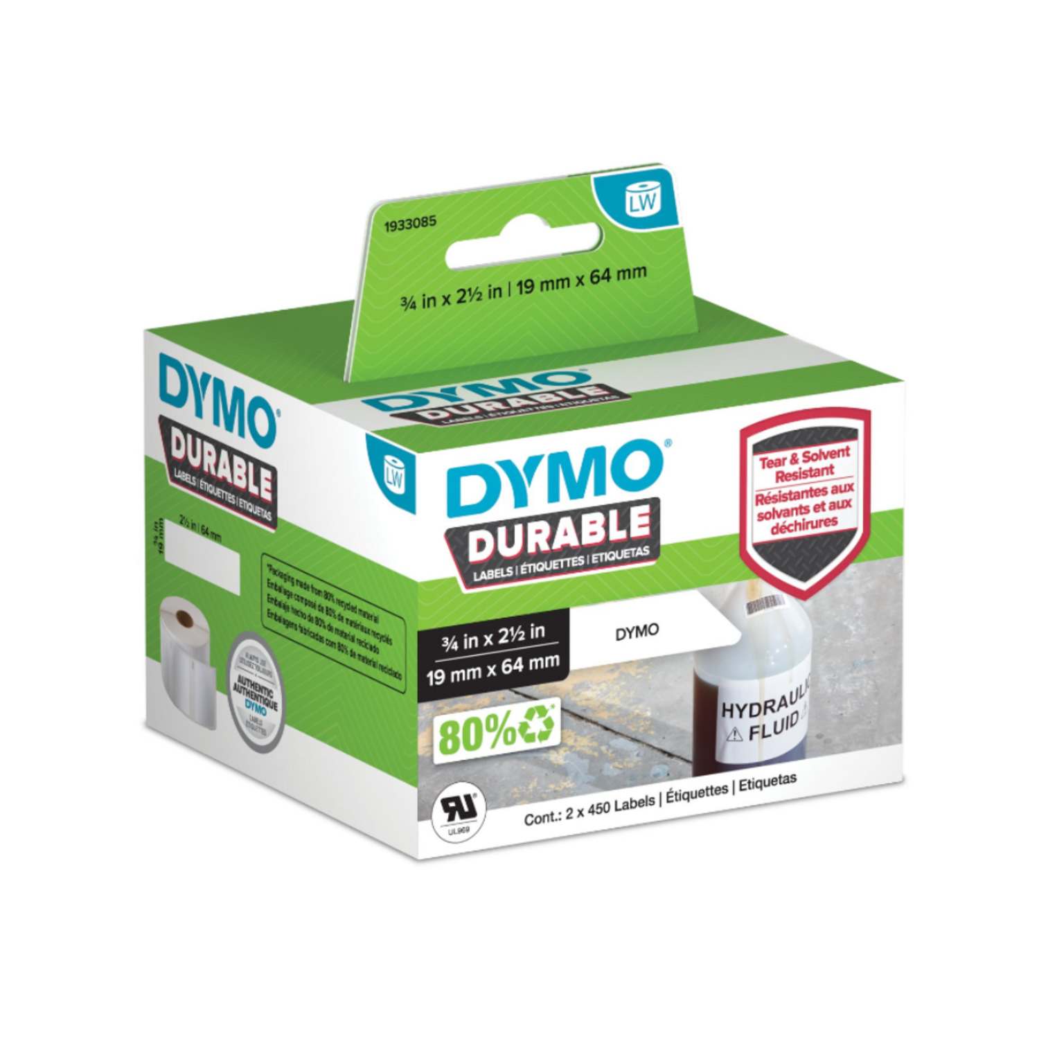 Etiqueta Dymo LW Industrial durable en poliester de 19mm x 64mm (900 Etiquetas)