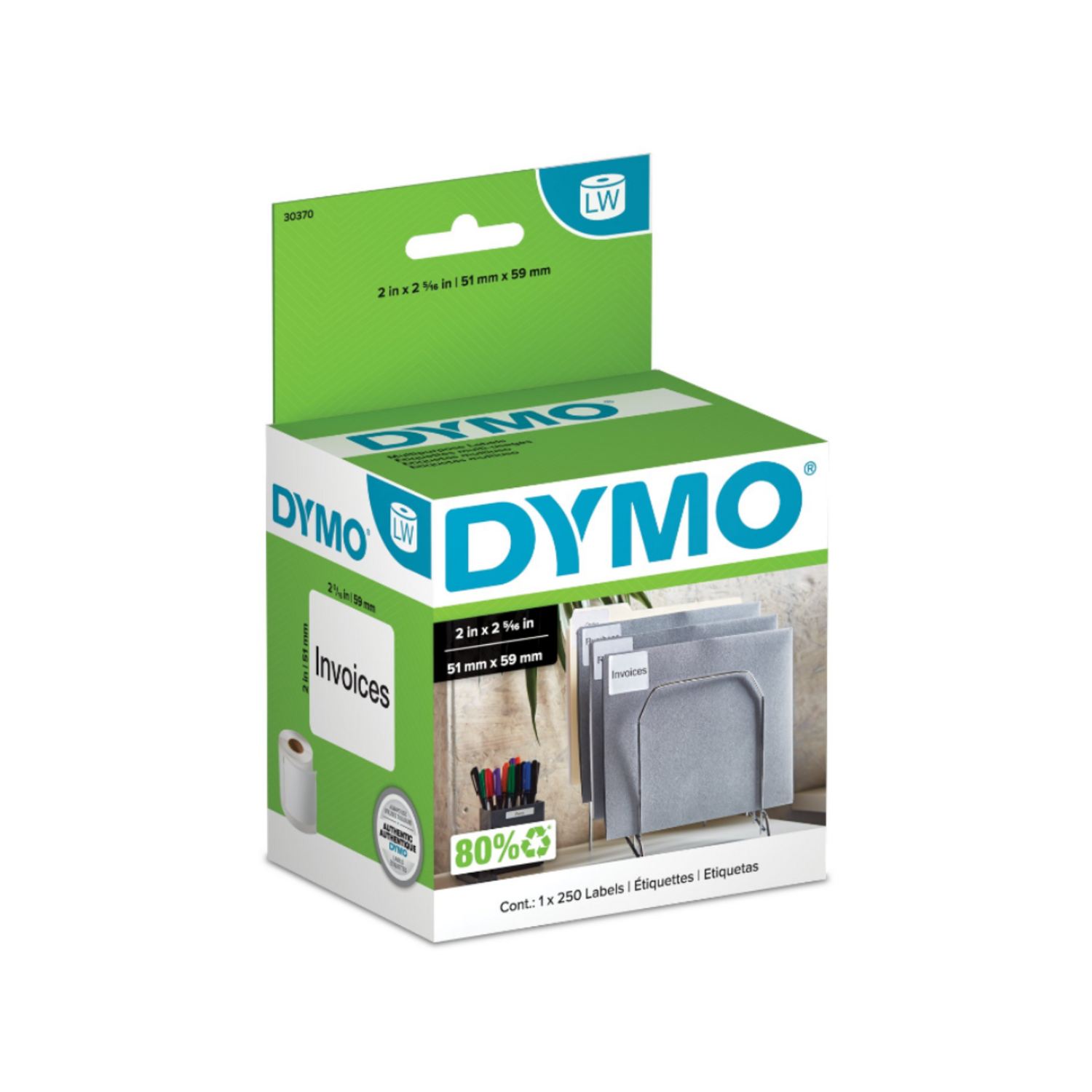 Etiquetas adhesivas Dymo LabelWriter color de blanco de 51mm x 59mm para impresora térmica 450 x 500 unidades