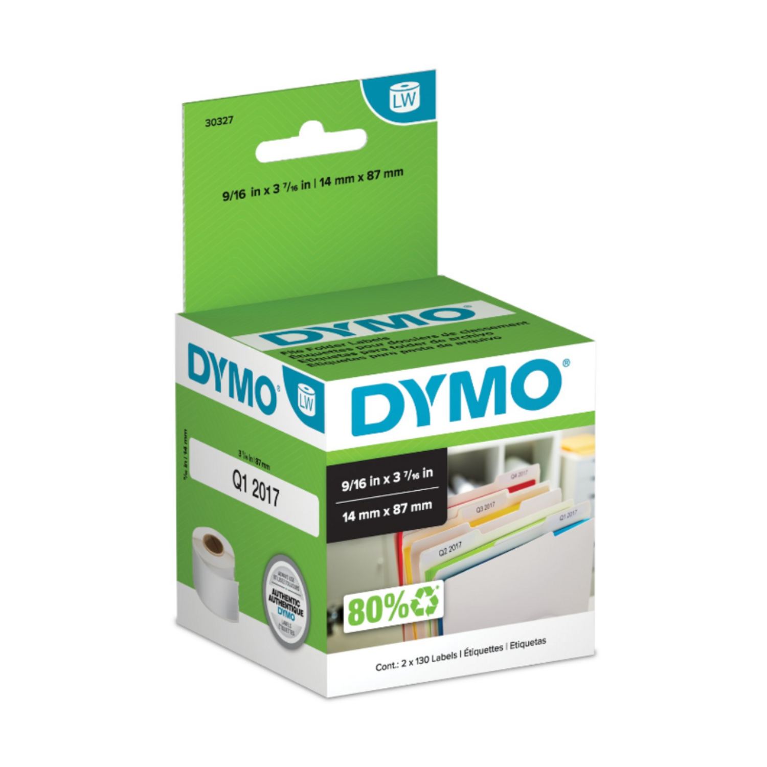 Etiquetas adhesivas Dymo LabelWriter de color blanco de 14mm x 87mm para impresora térmica LW450 x 260 unidades
