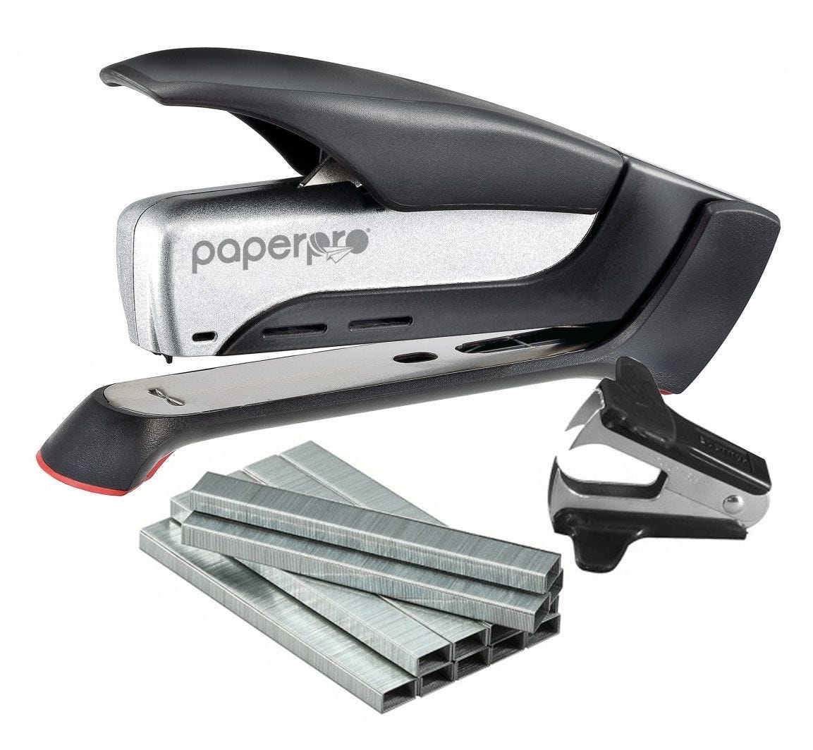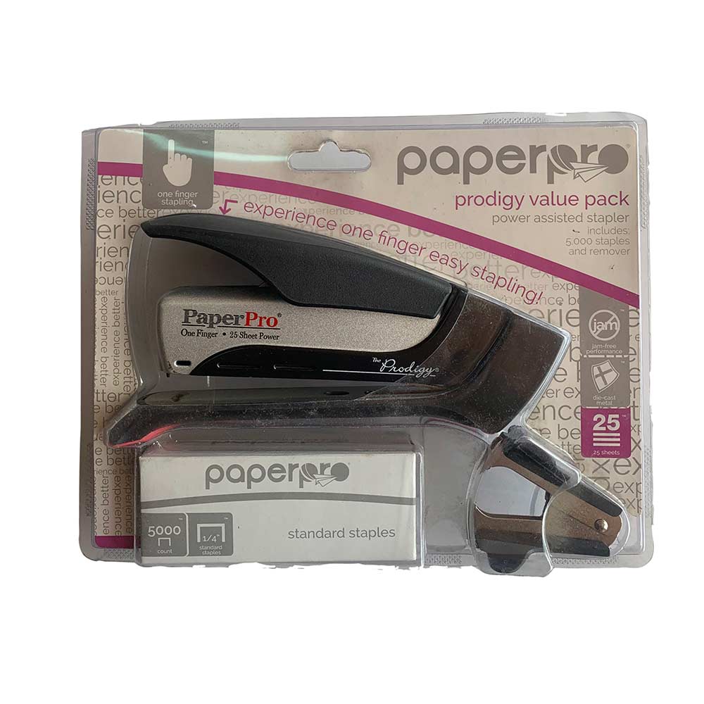 Para ahorros adicionales, compra esta grapadora Prodigy como un paquete económico que incluye un paquete de 5,000 grapas y un quitagrapas.