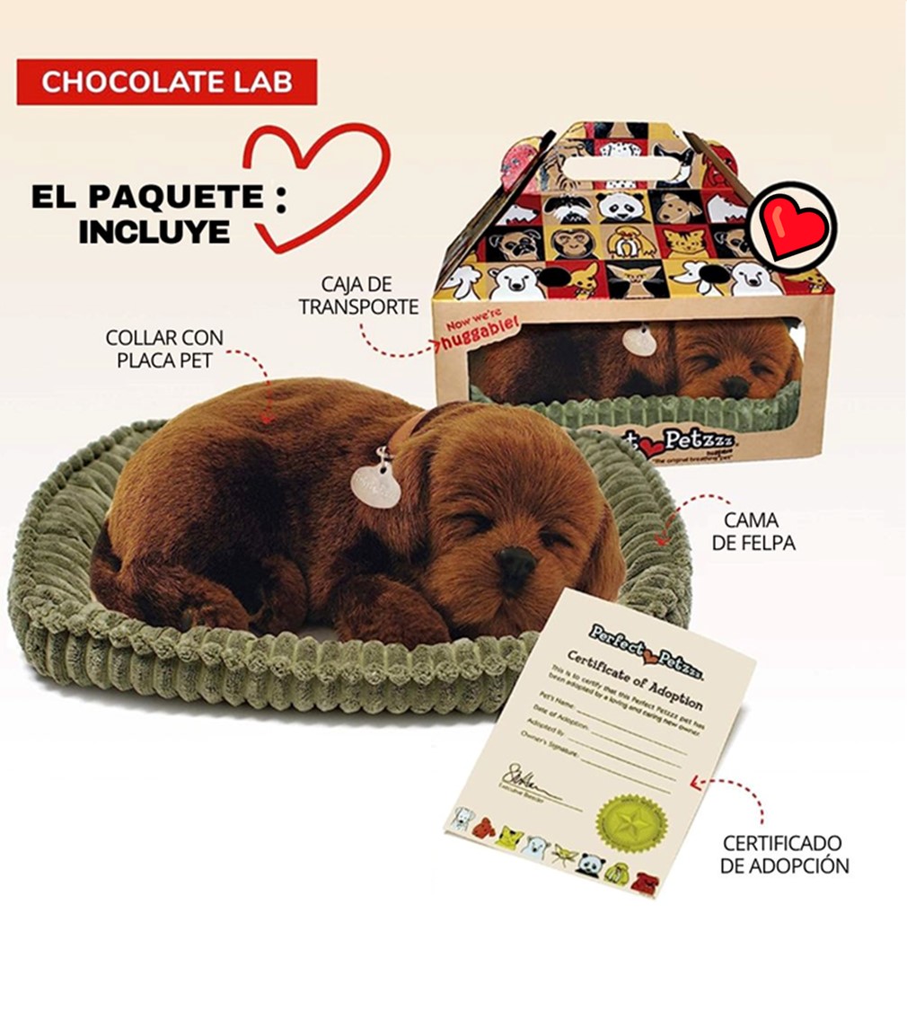 En cada Perfect Petzzz encontrarás un collar con una placa para mascotas, una lujosa cama de felpa, una caja de viaje, funciona con una pila alcalina D (NO incluida).